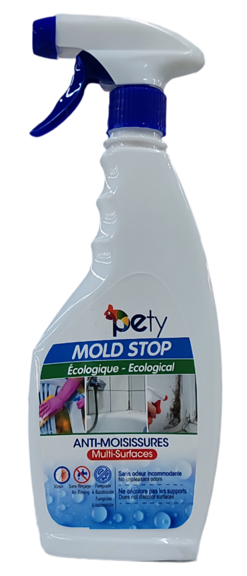 Sans javel, sans ammoniaque et sans agents agressifs, MOLD STOP nettoie en profondeur sans décolorer ni endommager les surfaces. Sa formule douce à base acide agit comme un fongicide et bactéricide léger, tout en respectant la santé des occupants et l’environnement intérieur.